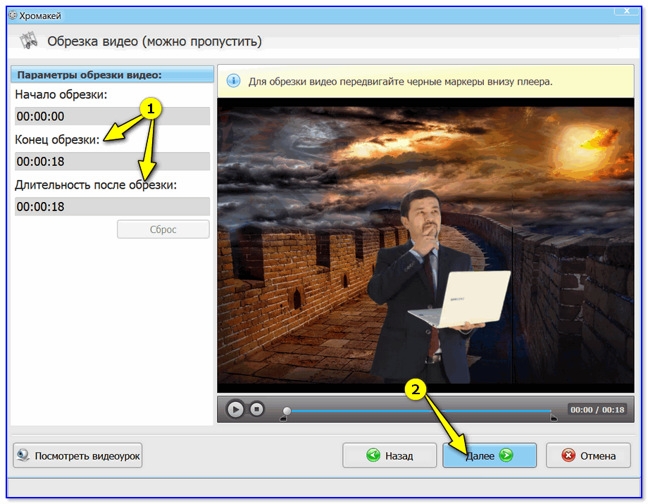 2. Скорректируйте длину видеороликов, если она разная.3. Активируйте клип с однотонным задником и выберите опцию «Цветовой ключ». Включите его, чтобы нужный оттенок удалился.