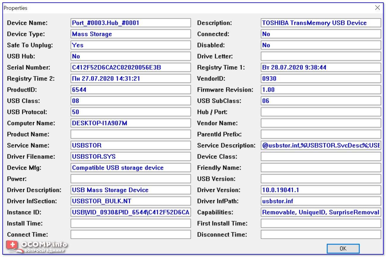 В качестве примера — см. скрин ниже : на нем я нашел флешку, которую подключал уже довольно давно (несколько месяцев назад!). Примечание : тип устройства у флешек и дисков — «Mass Storage».