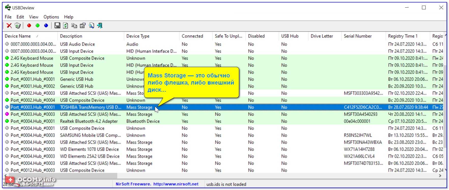 Для того, чтобы просмотреть их — можно воспользоваться как обычным редактором реестра (но это не очень удобно) , так и спец. софтом. Я рекомендую выбрать утилиту USBDeview (ссылка на офиц. сайт).