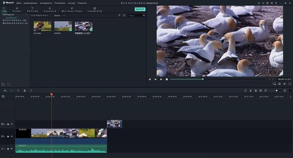 Если вам необходимо изменить продолжительность эффекта – сделать его более долгим или сократить – вы всегда можете это сделать просто сжав или растянув слой эффекта на таймлайне. После того, как вы закончили монтаж, перейдите во вкладку «Экспорт проекта» и сохраните видео в нужном формате на свой компьютер.
