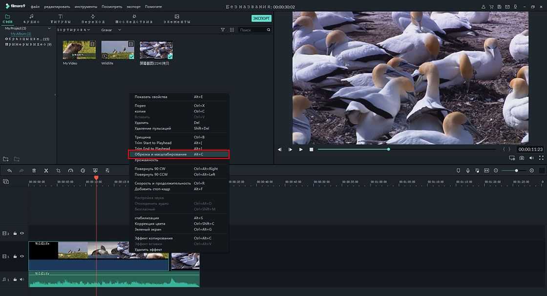 Шаг 2. Добавьте их на временную шкалу Filmora Video Editor, где и происходит редактирование. После сохранения видео на временной шкале щелкните по нему правой кнопкой мыши и выберите «crop», чтобы продолжить. Теперь вы можете свободно обрезать свое видео для масштабирования. Затем нажмите «ОК».