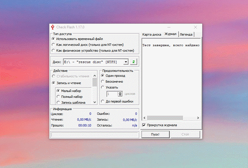 Этот софт эффективно проверяет работоспособность флеш-устройства.