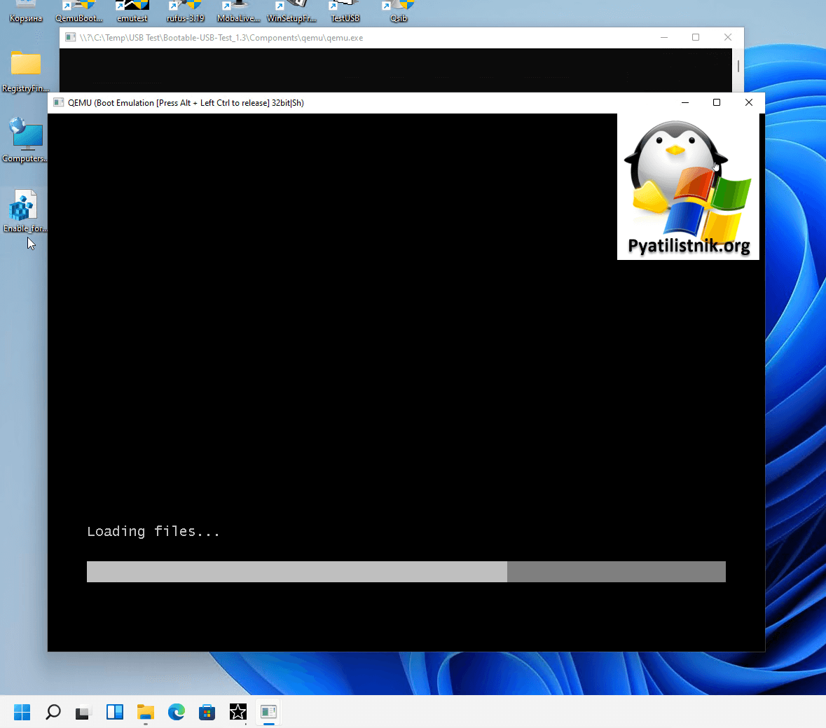 Через секунду Bootable-USB-Test показывает уже стандартный загрузчик Windows 11, проверка загрузочной флешки на работоспособность пройдена.