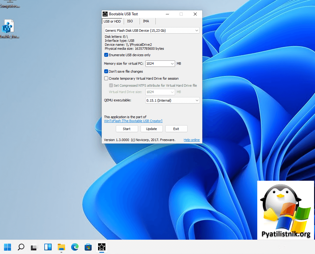 Как видим, все работает, программы запускаются, и USB-накопитель является установочным.