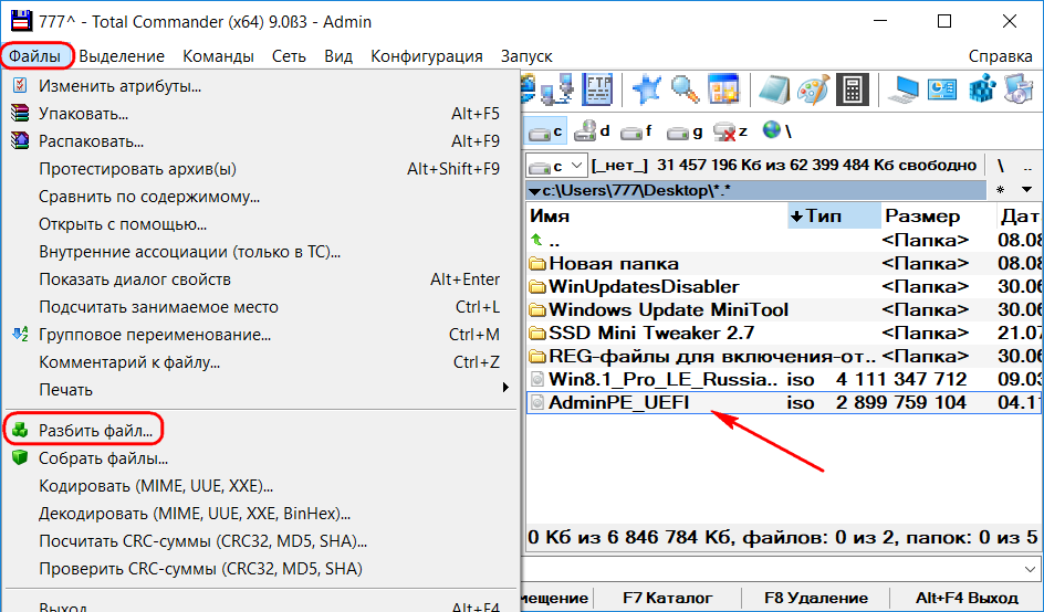 Разбиение файла в Total Commander