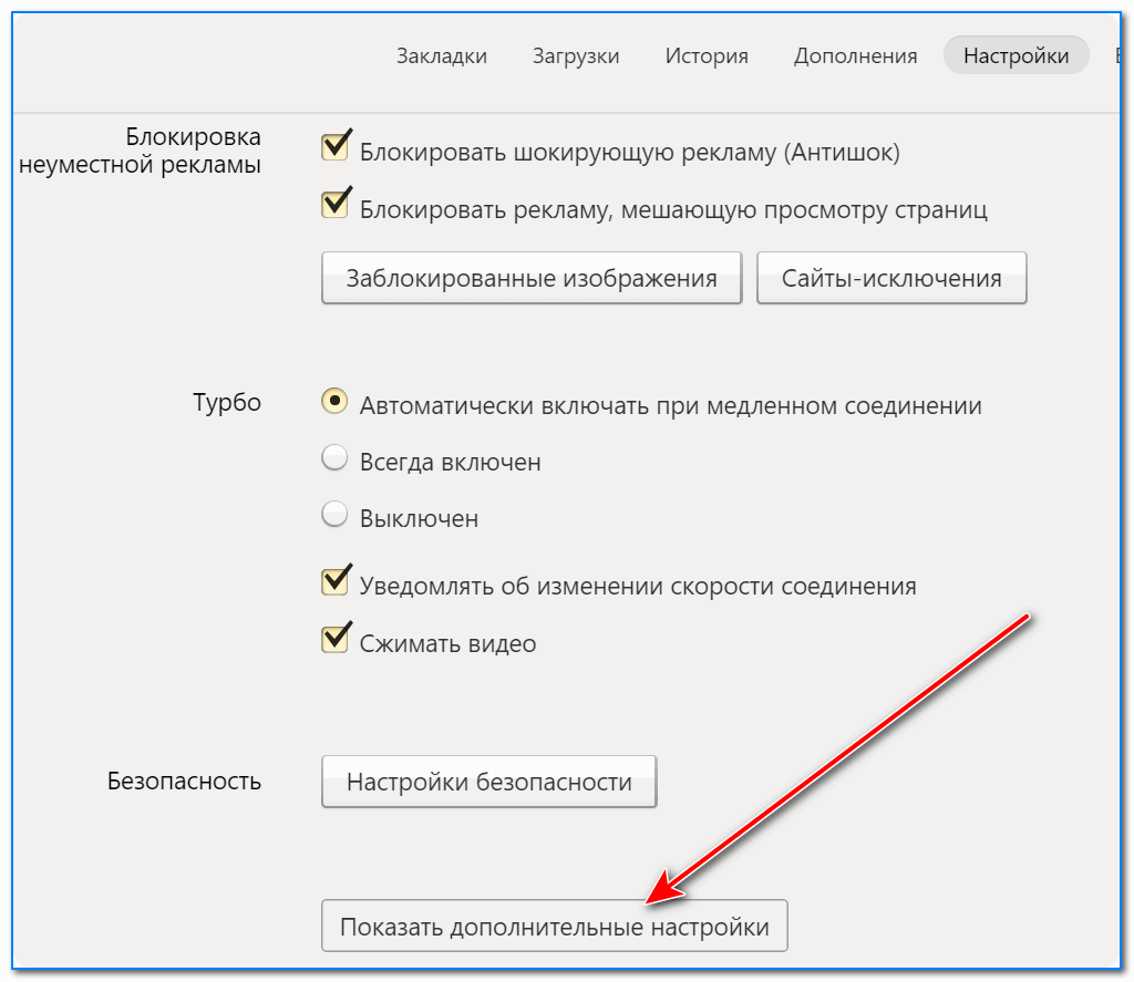 - Выберите Настройки > Показать дополнительные настройки, чтобы открыть параметры ниже.