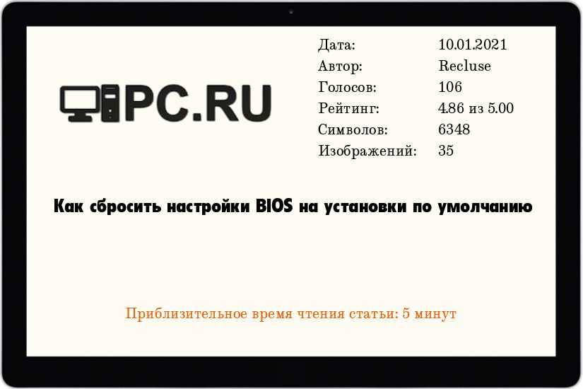 После выполнения указанных действий, BIOS должен сброситься до заводских настроек. Рекомендуется проверить работу комплектующих деталей компьютера.