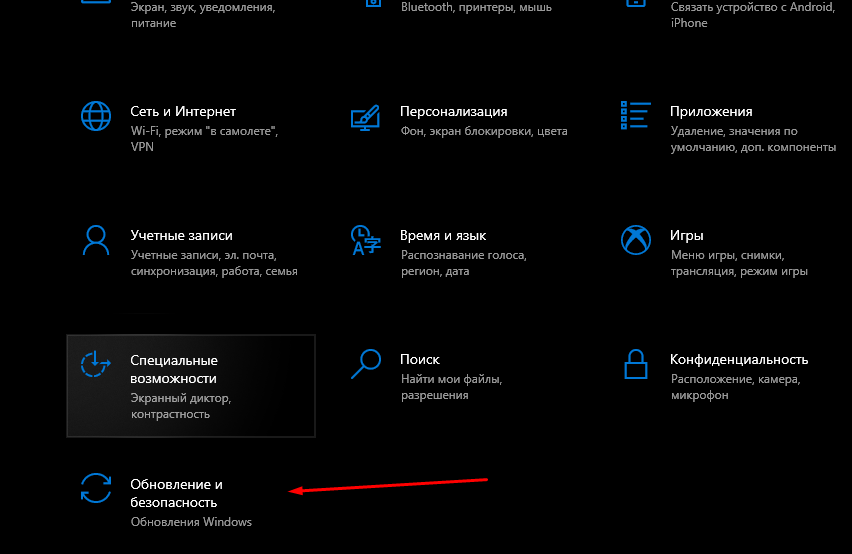 Перейти в раздел «Обновление и безопасность».