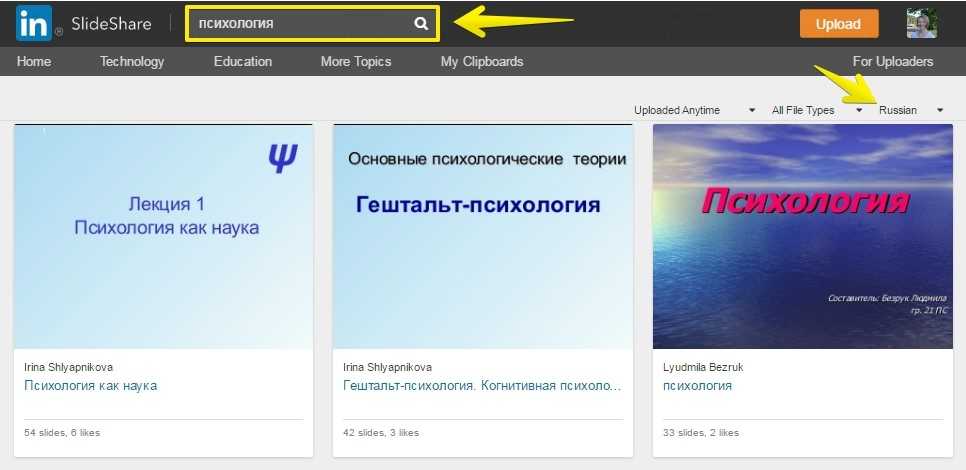 В первую очередь, на Slideshare, самом большом и популярном ресурсе с презентациями. К сожалению, этот ресурс заблокирован в России, но для зарубежных читателей я все же оставлю эту ссылку. На Slideshare есть неплохой поиск по ключевым словам, темам и языку. Правда, результат не всегда радует:
