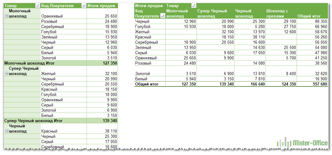 В результате мы получаем настоящую сводную таблицу.