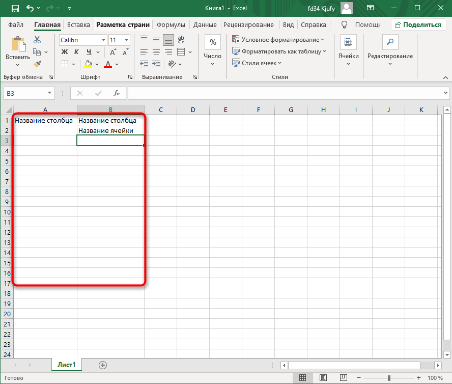 Обратите внимание на приведенный выше скриншот. Вы можете задавать любые названия для столбцов, заполняя данные в ячейках