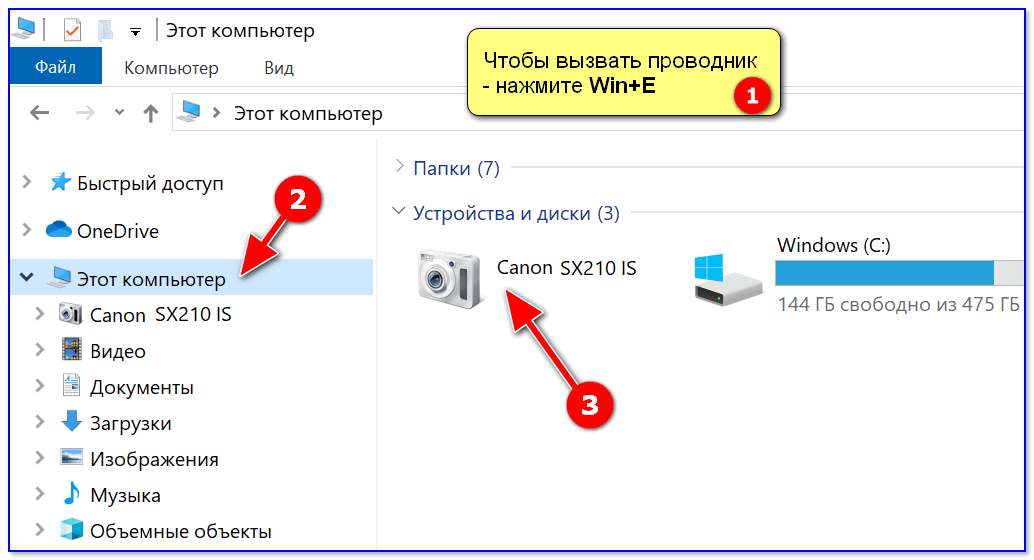 Находим новый появившийся диск — это и будет папка фотоаппарата.