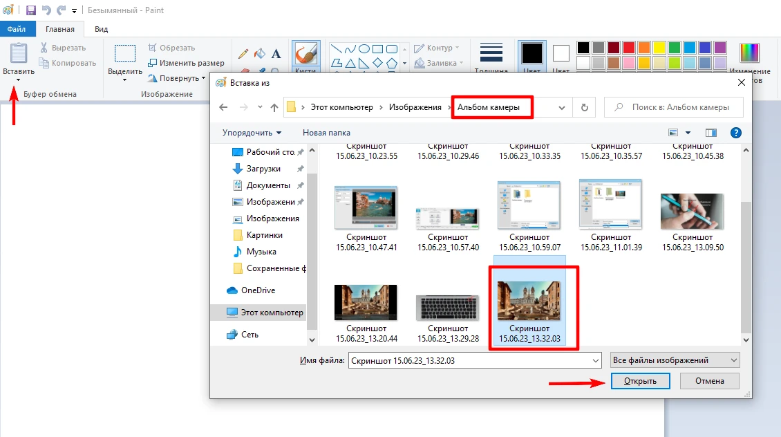 Чтобы сохранить кадр как фотографию, откройте программу Paint. Щелкните кнопку «Вставить» и выберите сделанный скрин.