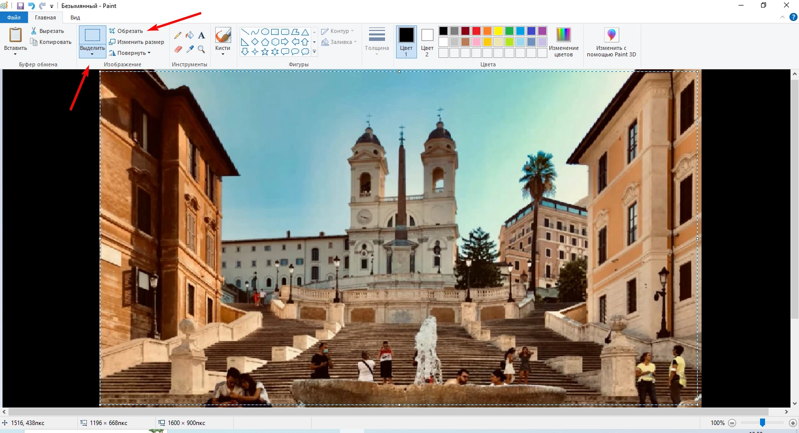 Чтобы убрать со скриншота черные поля, используйте опцию «Выделить». Обозначьте границы снимка и кликните «Обрезать».