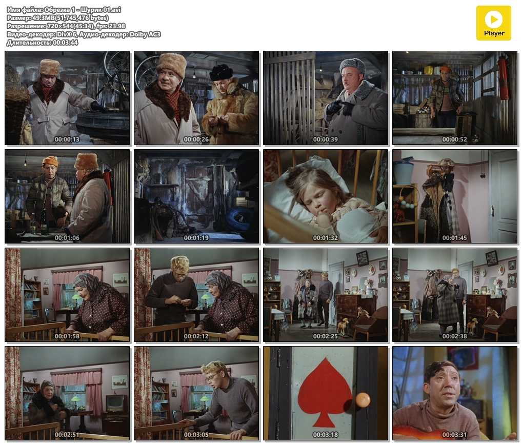 Раскадровка выглядит достаточно наглядно, сразу можно понять, о чем данное видео. Сверху в углу автоматически добавляется название файла, его размер, разрешение, видео- и аудио-кодеки, длительность. Весьма удобно!