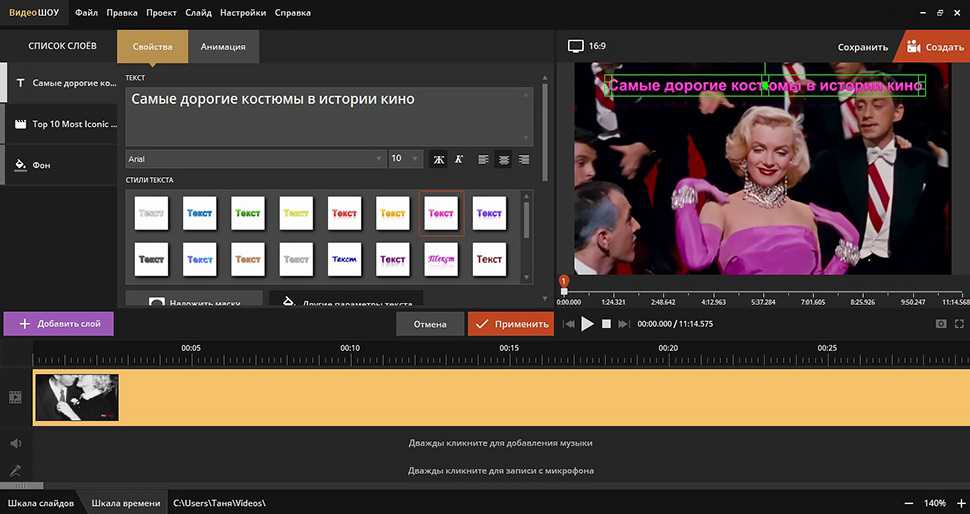 ВидеоШОУ позволяет сделать скриншот видео на компьютере буквально в один клик мыши – достаточно добавить клип и щелкнуть на кнопку. Хотите украсить картинку? Редактор слайдов поможет обработать видеоролик в покадровом режиме. Просто выберите нужный момент в фильме, остановите видео и добавляйте графику, текст, рамки и эффекты.