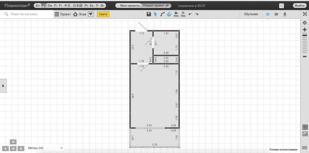 4. Для добавления других комнат используйте одноименный раздел и трансформируйте помещение согласно своим замерам.