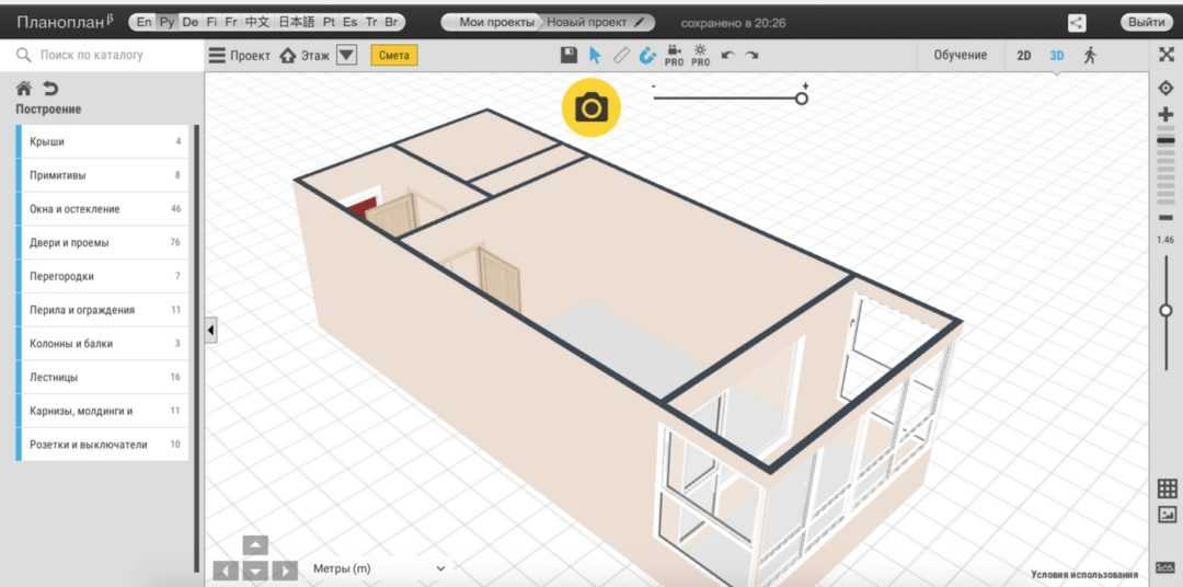 Planner 5D — очередная программа по проектированию помещений в формате 2D и 3D для OC Windows. Платформа HTML5 позволяет получить доступ к сервису через интернет. Работать можно на компьютере и мобильном устройстве.