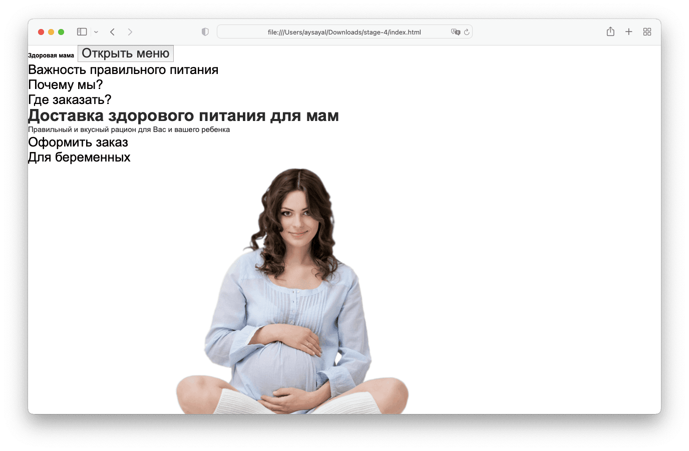 Получился сайт, но при клике на ссылки меню ничего не происходит. Поэтому нам нужно придумать название страниц, прописать их в URL меню и создать страницы с этими названиями.