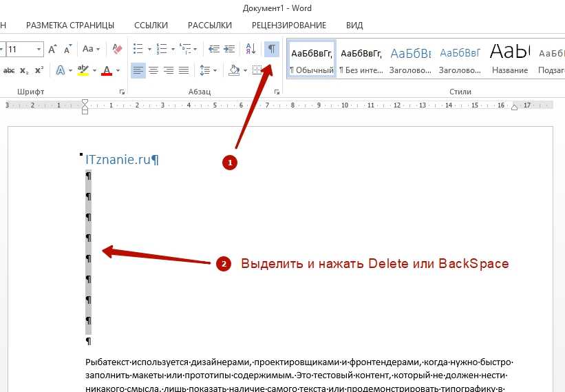 Шаг 3. Если пустых абзацев на странице много, то клавишу придется нажимать несколько раз.