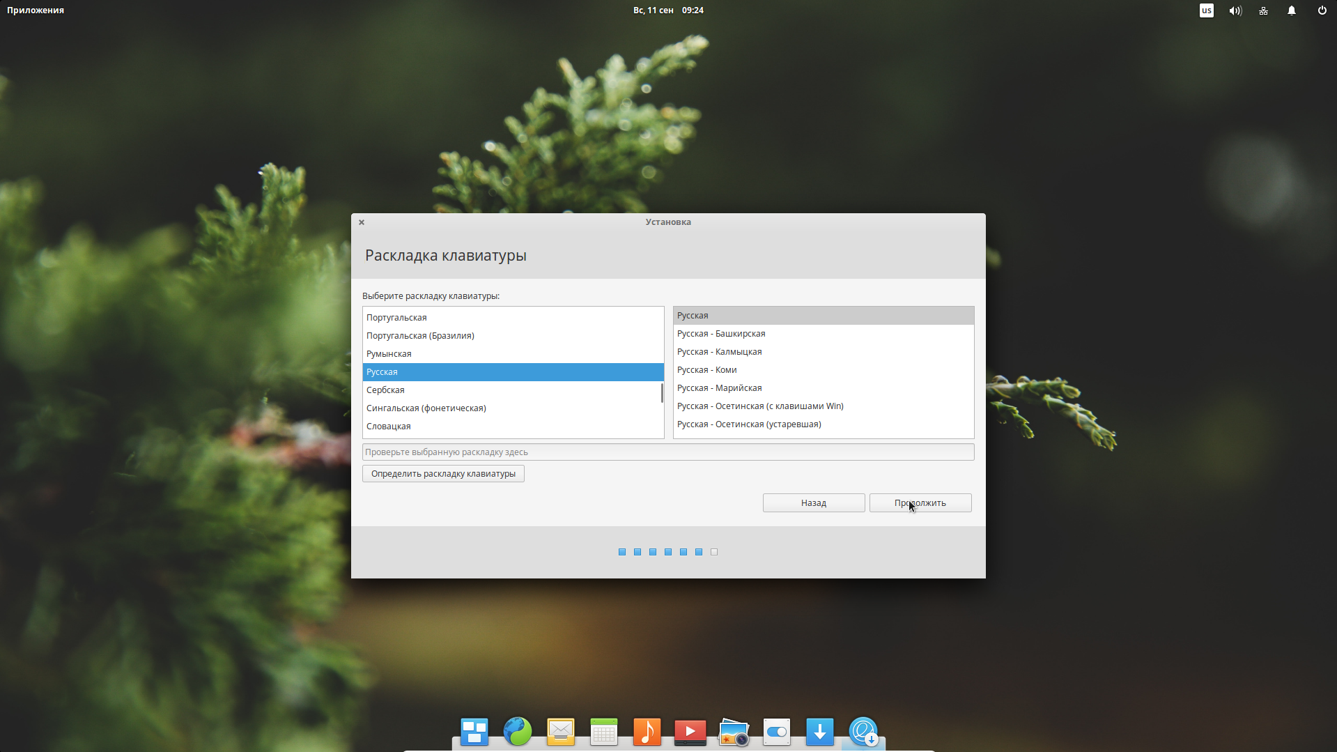 Выберите раскладку клавиатуры, которая будет использоваться по умолчанию: