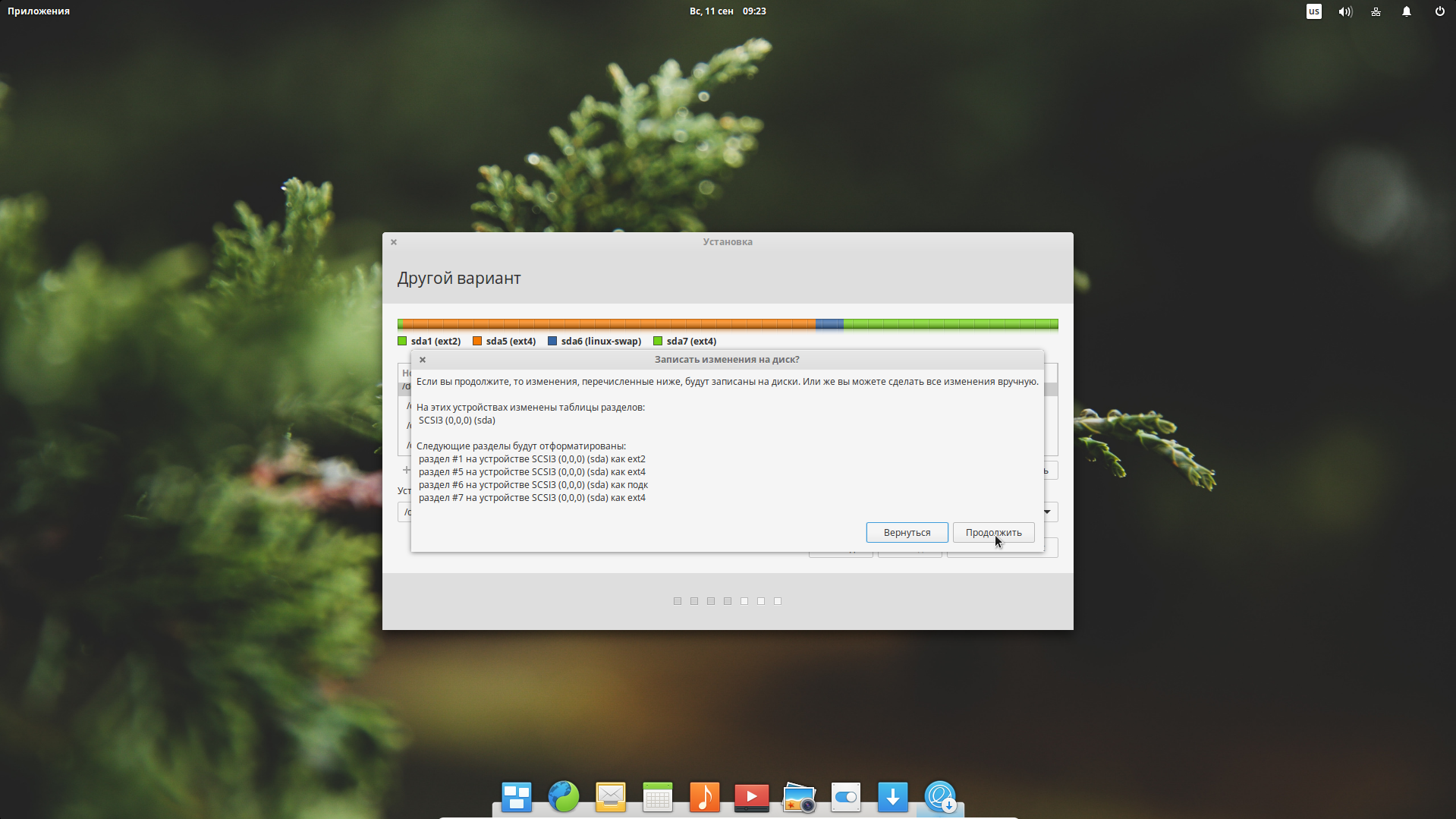 Нажмите продолжить, затем подтвердите запись изменений на диск.