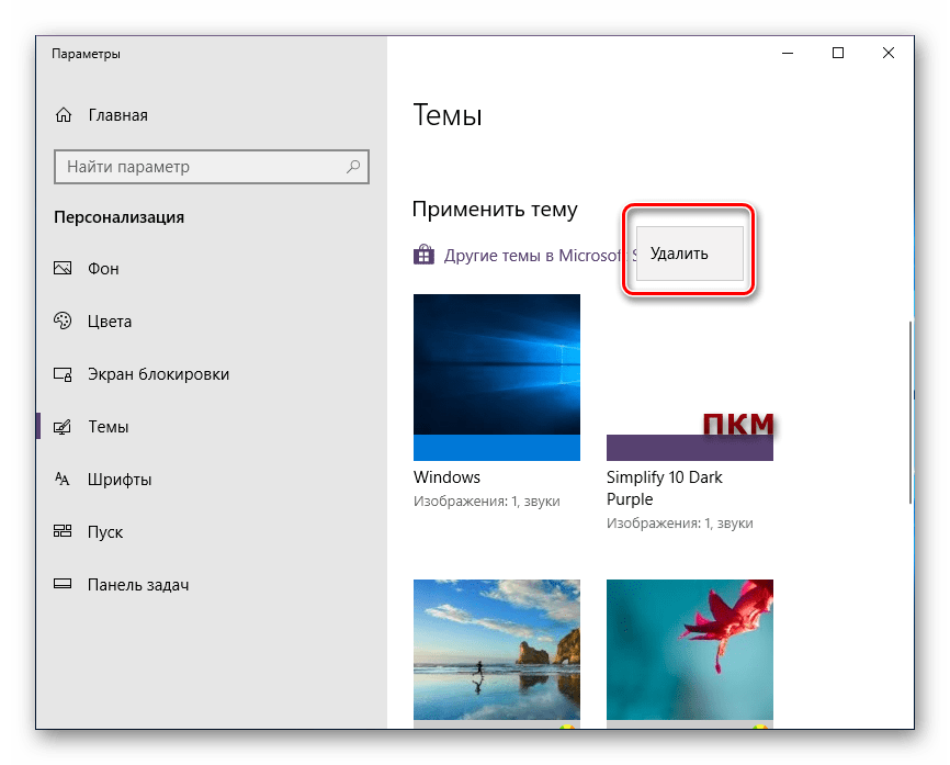 Важно! Предустановленные в Windows 10 темы удалить нельзя – они защищены