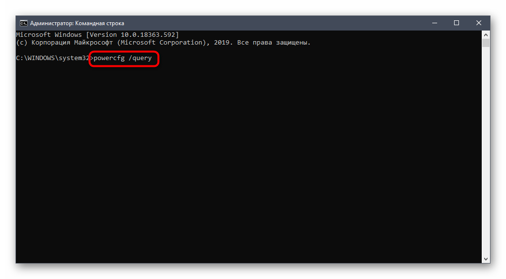 Введите powercfg /query, чтобы просмотреть все доступные настройки питания.