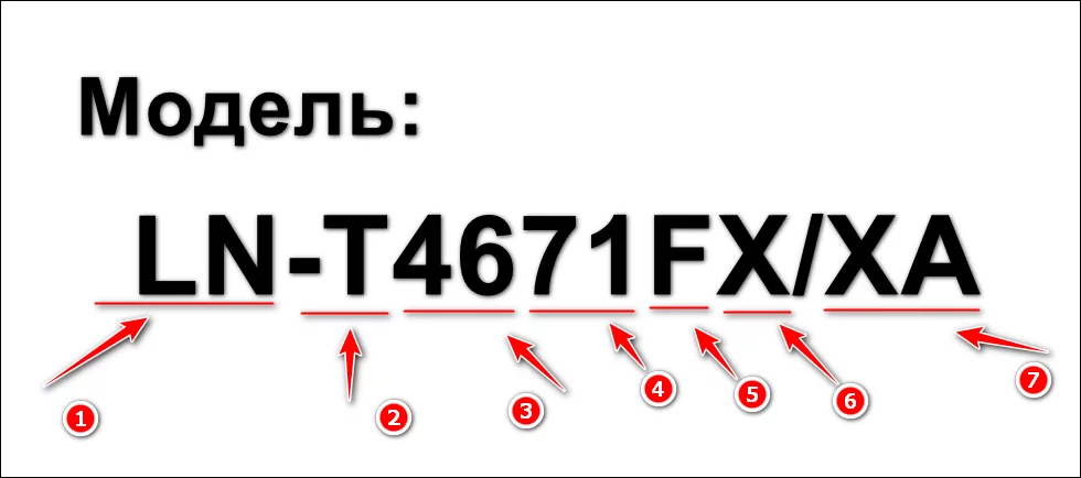 - Цифры или буквы, обозначающие модель — у ТВ от Самсунг — 4 последних, LG маркирует буквов в середине кода.