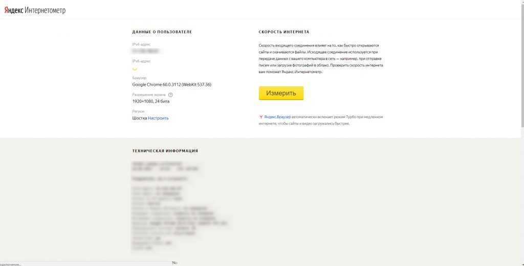 Простейший инструмент «Яндекса». Показывает исходящую и входящую скорости. Для удобства результаты отображаются одновременно и в мегабайтах, и в мегабитах в секунду. Выбирать сервер для проверки нельзя.
