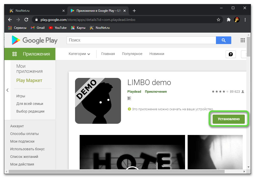 Просмотр через браузерную версию Play Маркета