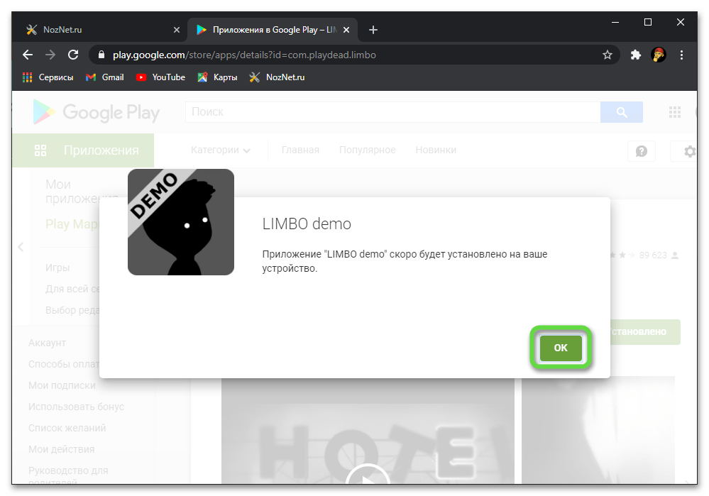 - В браузере вашего компьютера откройте сайт play.google.com;