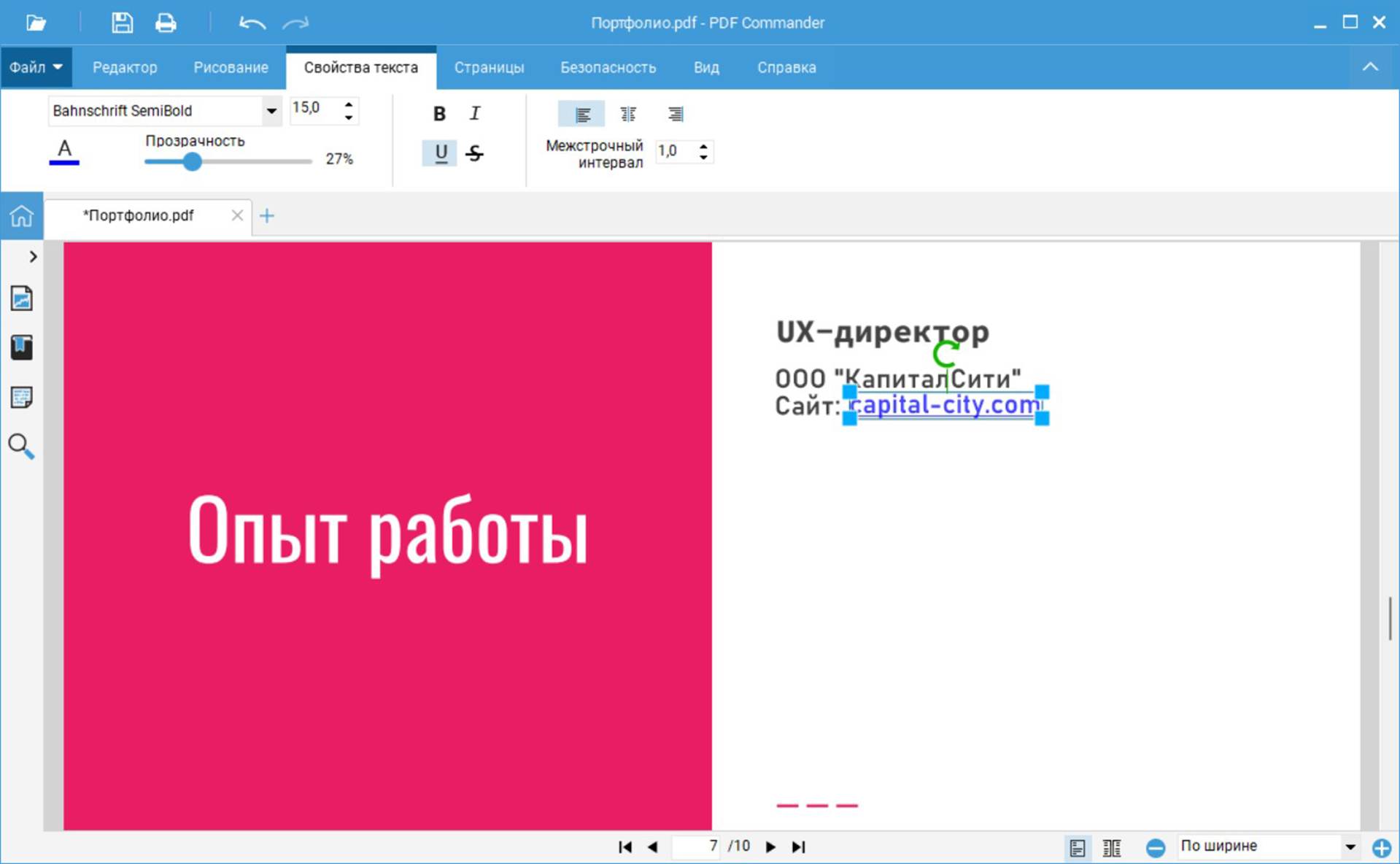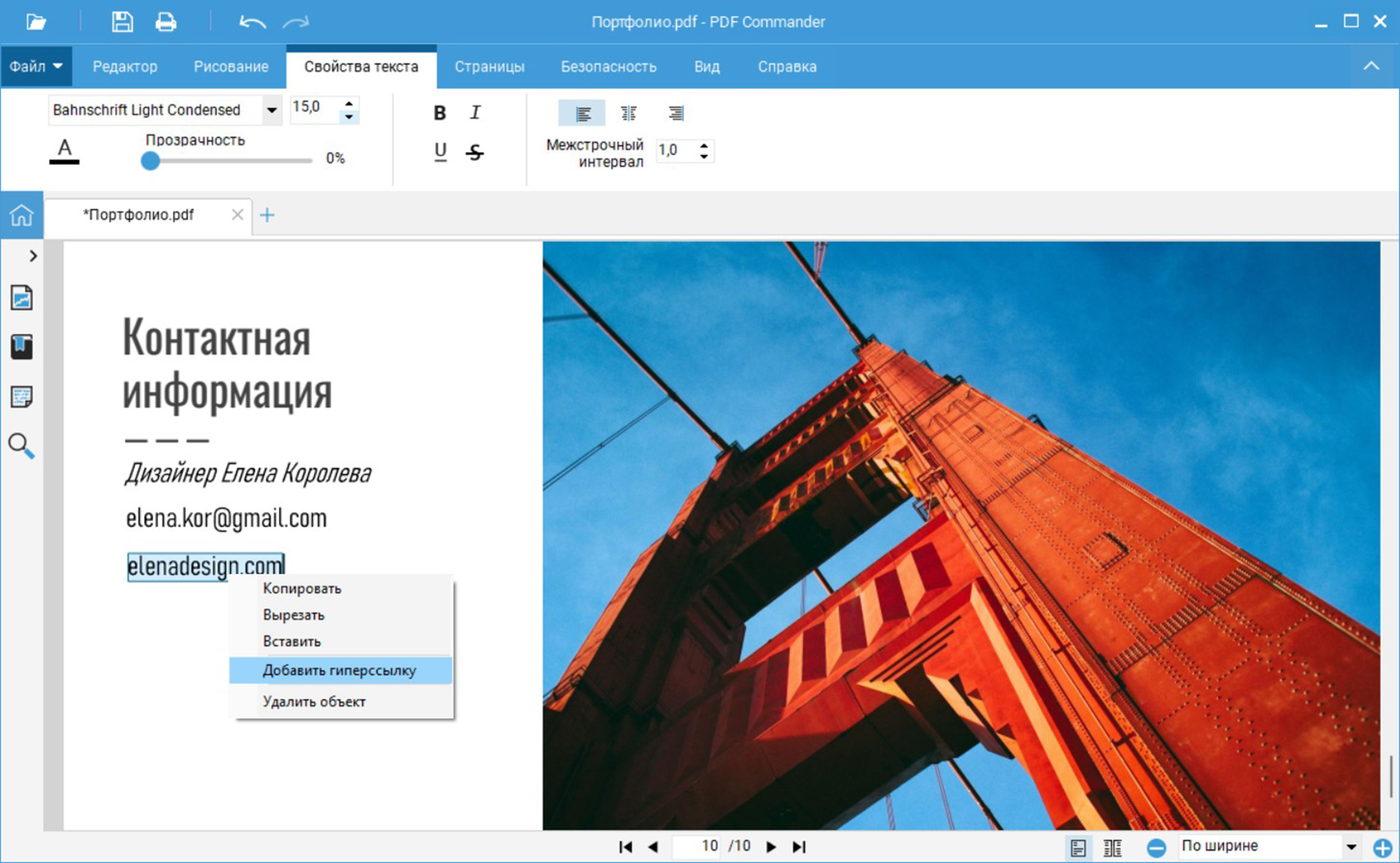 С помощью софта вы сможете создавать новый текстовый слой на листе и встраивать в него ссылку, заменять уже существующие надписи. Данные будут кликабельны, и любой пользователь сможет переходить на указанный сайт. Скачать программу можно бесплатно для компьютеров с Windows 11 и ниже. Она предлагает простое управление на русском и подходит новичкам.