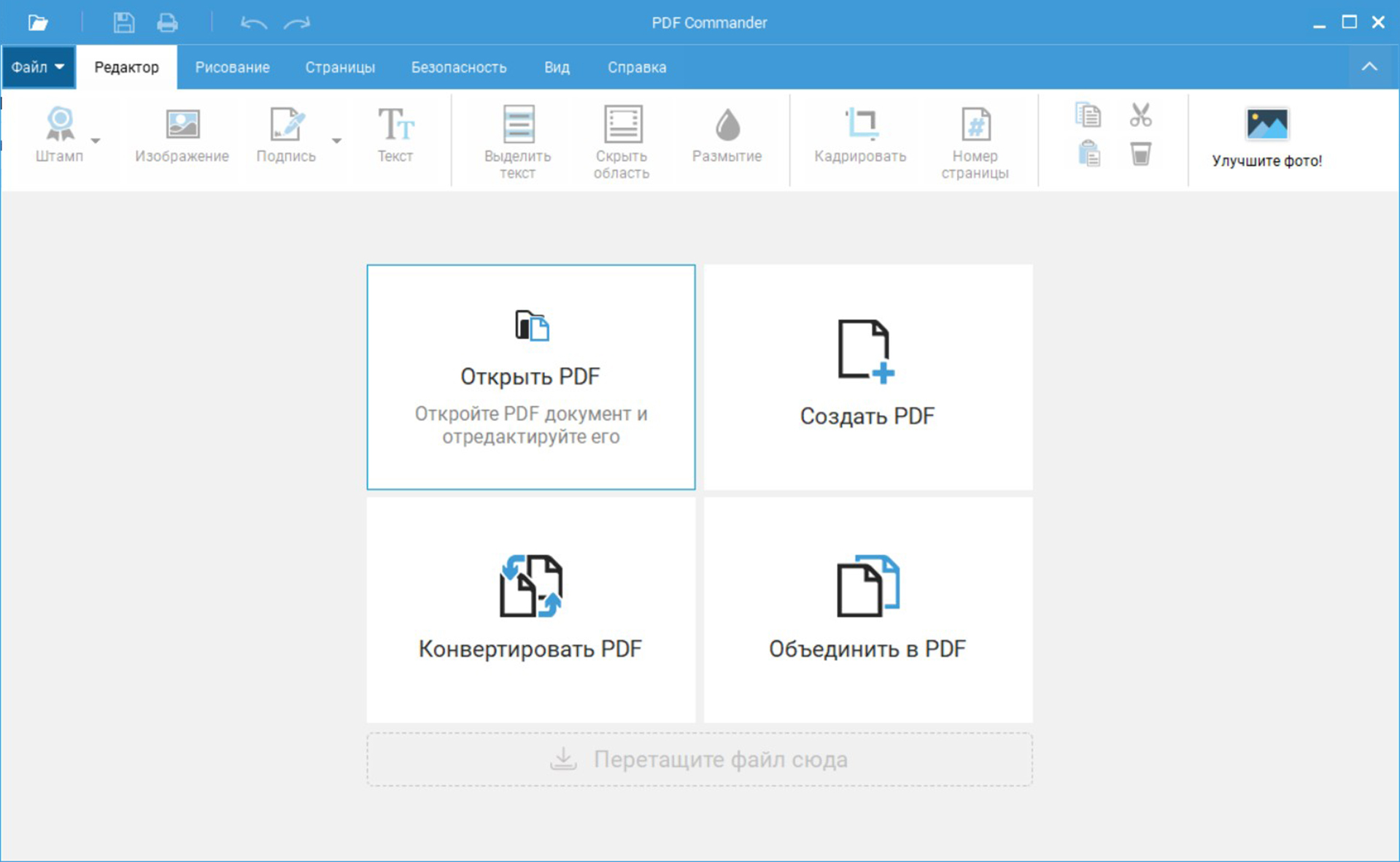 Редактор PDF Commander включает в себя набор инструментов для чтения, создания и редактирования материалов в формате PDF. Он позволяет открывать любые документы с жесткого диска, объединять несколько объектов в один, конвертировать картинки и текстовые файлы в PDF.
