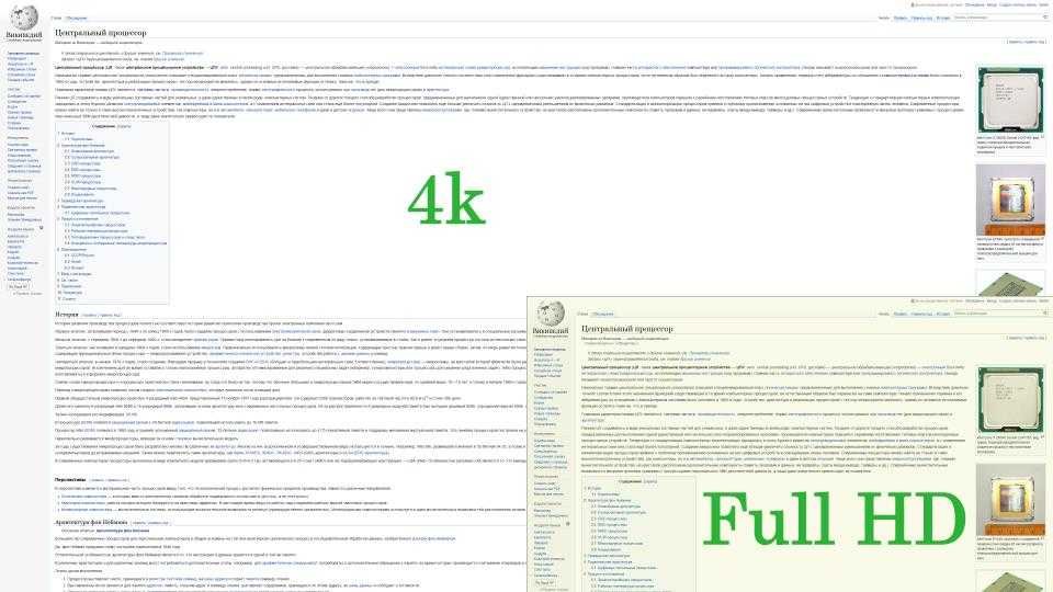 Если же изображение будет 4k, все элементы визуально сильно уменьшатся. Можно в настройках увеличить шрифт в 2 раза, а в играх выставлять разрешение Full HD, и чтобы оно растягивалось на весь экран. Но в таком случае возникает вопрос: нужно ли переплачивать за 4k матрицу? Если ответ «да», обязательно лично изучите представленные модели на предмет комфортности. Может, для вас окажется оптимальным вариантом 32″ и 4k, или сможете без проблем работать с таким разрешением на 24″ мониторе.
