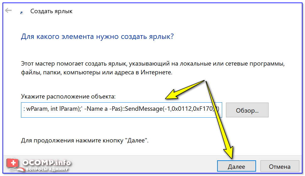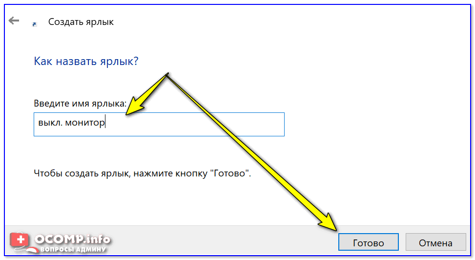Если вы не копируете nircmd.exe В каталог Windows укажите полный путь. Вместо «c: \ temp» вы можете выбрать любой другой каталог для файла ярлыка. «Выключить монитор» будет именем файла ярлыка, но вы можете выбрать другое имя.