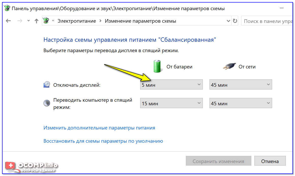 В Windows есть достаточно удобные настройки электропитания, позволяющие задать определенные условия, при которых монитор будет выключаться. Например, можно задать это действие при бездействии ноутбука в течении 5 мин.