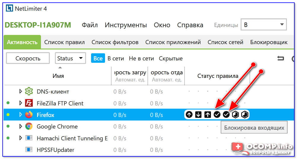 Блокировка входящих и исходящих пакетов // NetLimiter