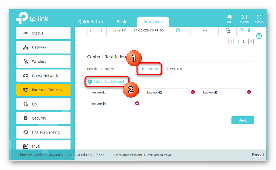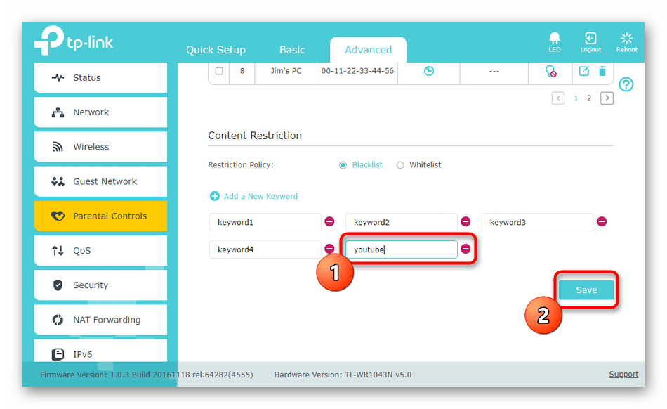 Еще один метод, позволяющий обойтись без применения сторонних решений, — обращение к настройкам маршрутизатора. Сейчас практически в каждой модели есть встроенная технология родительского контроля или прямой блокировки сайтов, что поможет решить поставленную задачу.