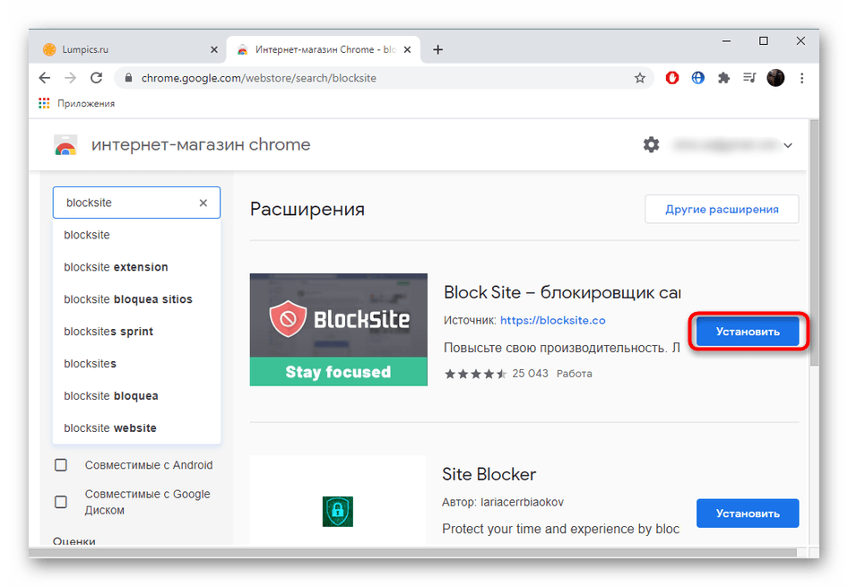Если вы хотите блокировать сайты при помощи расширений, но приведенный выше вариант вам не подходит, воспользуйтесь магазином дополнений используемого веб-обозревателя, отыскав там другие подходящие приложения. Установите их и настройте примерно по тому же алгоритму, который был продемонстрирован только что.