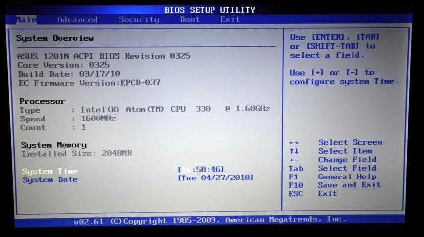 - Кнопку F2 не отпускаете до тех пор, пока не появиться главная страничка BIOS/UEFI.