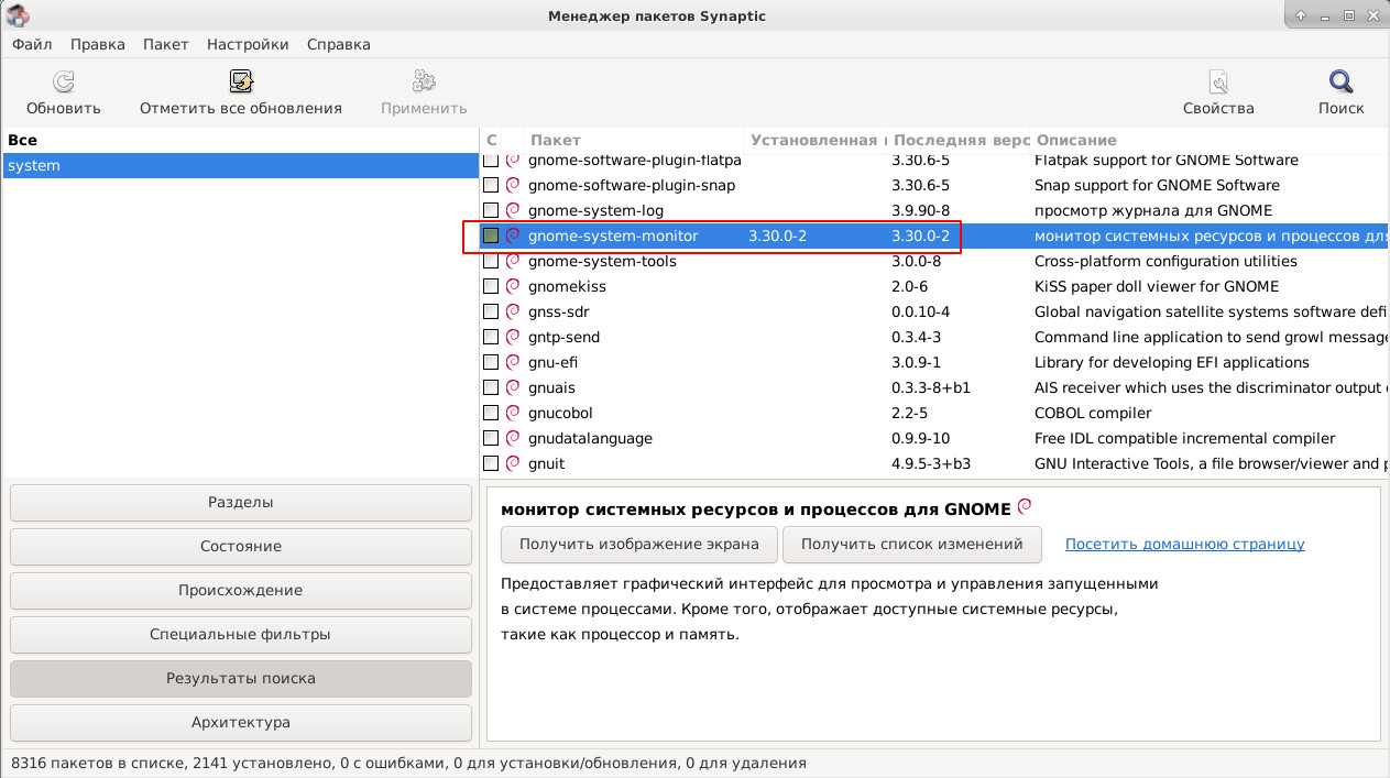 Большим спросом пользуется диспетчер задач из графической оболочки Gnome. Он относительно современный и отображает более подробную информацию о процессах, протекающих в системе. Тем, кто привык к работе с GUI, он точно понравится. Чтобы начать с ним работать: