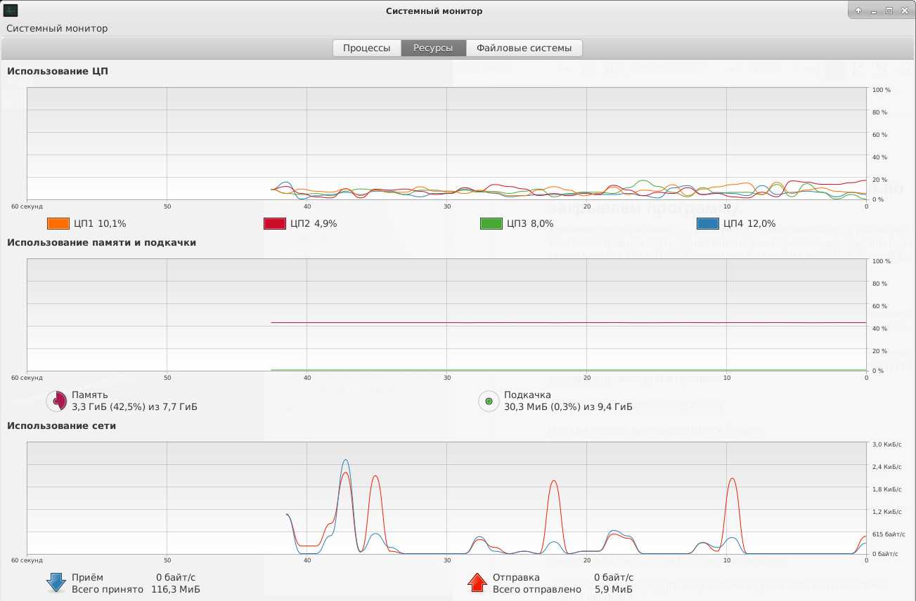 Можно установить «System Monitor» и через терминал — для его вызова используйте сочетание Ctrl+Alt+T (Win+T) , либо ярлык на раб. столе.