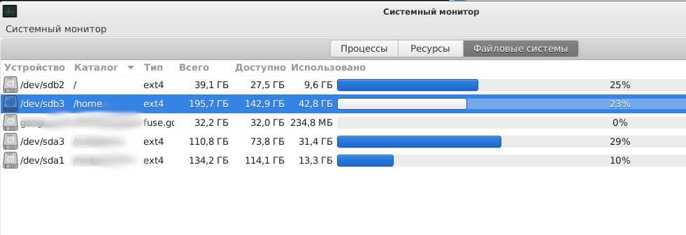 На вкладке файловые системы вы можете посмотреть всю информацию о ваших накопителях