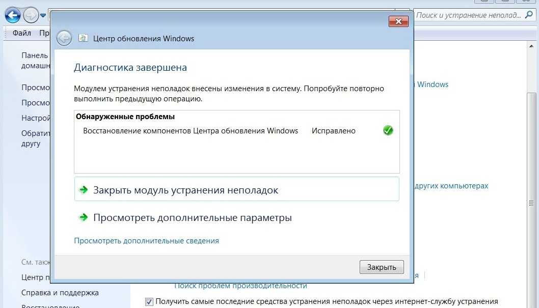 После окончания устранения неполадок утилита выдаст пользователю отчёт о своей работе, в котором будет указано, какие ошибки были обнаружены, а какие — устранены.