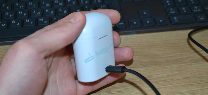 - Используя разряженные наушники тратим весь заряд кейса — просто пользуемся наушниками и заряжаем их в кейсе. Сам кейс не подзаряжаем!