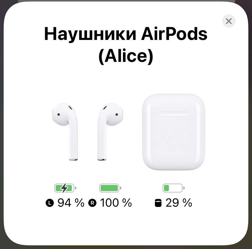 Давайте поговорим о том, как посмотреть на сколько заряжены AirPods с помощью вспомогательного гаджета. Начнем с Айфона: