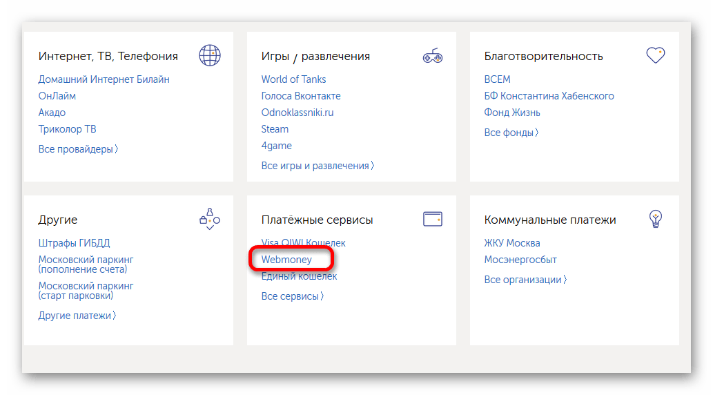 Информация о всех способах пополнения находится на сайте платежной системы. Выберите интересующий вариант и кликните по нему мышью, чтобы узнать о нем подробнее.