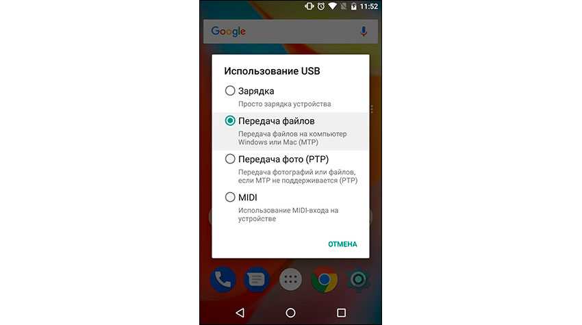 - Передача файлов (MTP) — выбирайте этот вариант,
