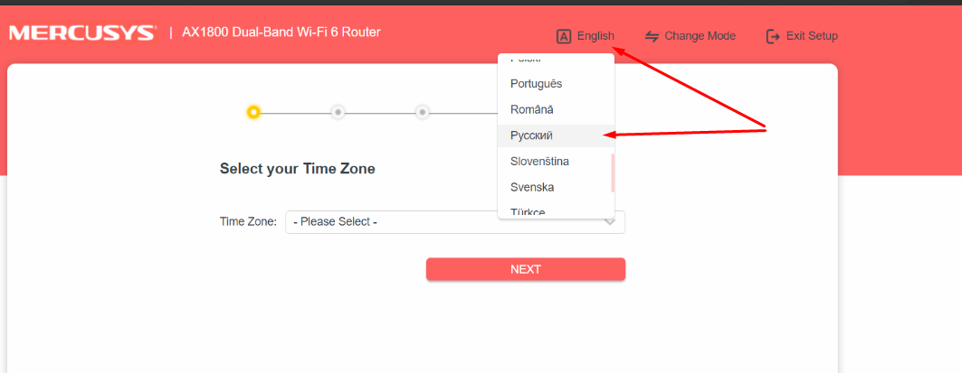3. Откроется веб интерфейс роутера. Если интерфейс открылся не на русском языке, меняем язык на русский.